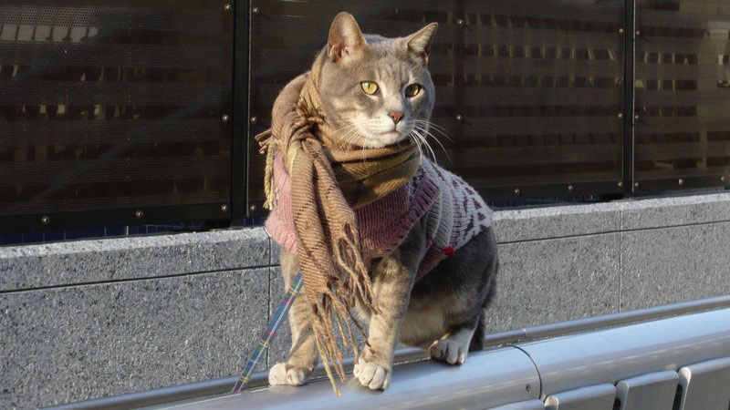 手すりの上を歩くのが日課らしい、毛づやのいい猫